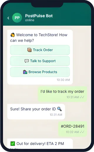Order tracking, cart recovery, catalogs, payment reminders.